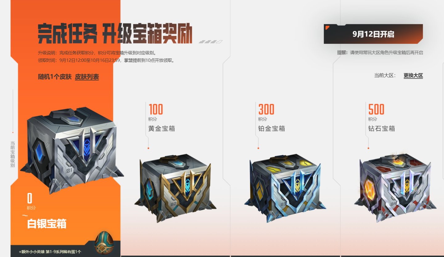 0分白银宝箱:奖池内随机皮肤、1~9系列小小英雄蛋