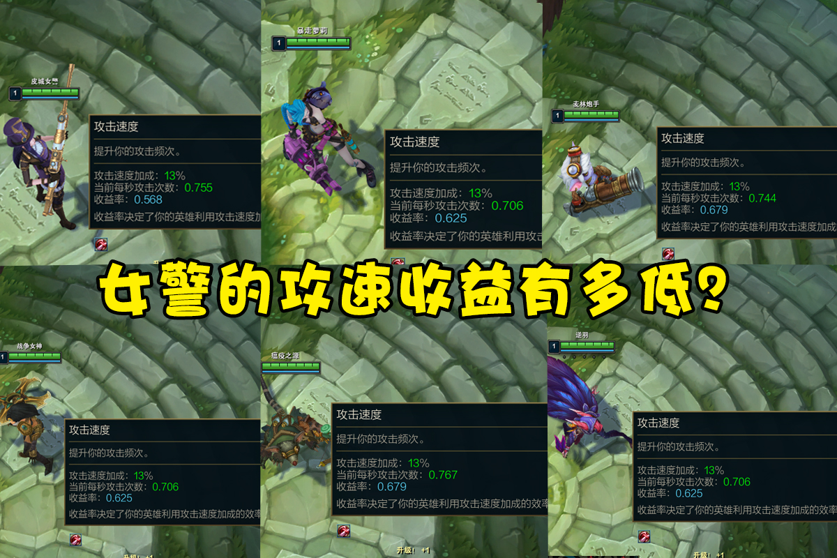 有些兄弟可能不清楚为何女警到了中期会这么弱,因为在拥有650码射程的同时她也付出了一些代价,比如超低的攻速收益和超长的技能前摇,女警的攻速收益是0.568(每10%攻速只有5.68%实际加成),我随便找了几个同类型ADC做对比,金克斯的攻速收益是0.625、小炮是0.679、轮子妈是0.625、老鼠是0.679、霞是0.625,同样的装备女警攻速会比其他ADC慢一拍,并且技能夹杂平A输出能力很一般,不仅对拼吃亏,打前排也是巨慢。