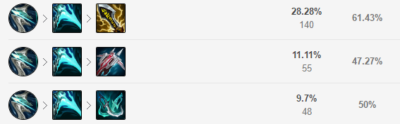 神话装备选择狂风之力,能够有一段位移,调整位置,更好地进行倒勾。夺萃之镰是霞的核心,能够提供回蓝,增加输出。后续可以选择无尽增加普攻伤害,大轻语用来打坦,绿叉增加攻速。