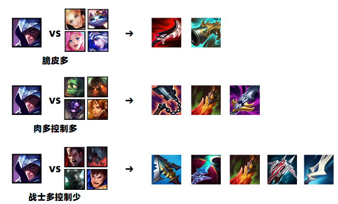 1.AD刺客大的出装思路就三套,脆皮多幕刃收集者,前排多控制多可以直接转渴血死舞饮魔刀走战士装的思路,另一套是星蚀+多米尼克/赛瑞尔达(没错,前排多的情况刺客是真可以出多米尼克的)。