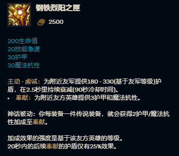 3.对于一众硬辅来说,出日炎系列神话坦度不会比鸟盾高多少,反而鸟盾的光环效果对团队的帮助会比日炎系列神话高很多,极地只要你能在自己状态没被压下去之前开启团战并不需要投资太多肉装在自己身上,反甲、骑士之誓等功能性装备会比单纯加自身坦度的肉装效果更好。