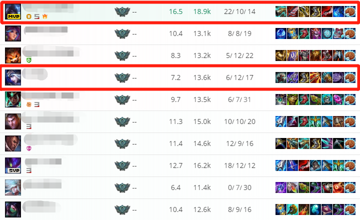 3.推荐一个战士出装的核心思路,就是确保你装备提供的伤害能一套打残甚至是灌死C位,并且时刻注意对你伤害最高的敌方输出,否则随意进场开人只会让你成为敌方叠征服者和致命节奏的工具人。