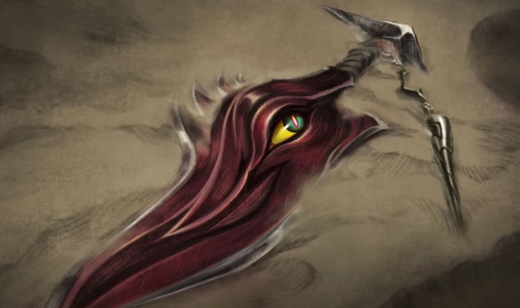 奥瑞利安索尔CGU项目完成后,下一个新英雄是玩家期待已久的暗裔,这是一个刺客定位的新英雄。和其他的暗裔英雄一样,新英雄也是被封印在武器里,这把武器是一柄暗裔匕首,预告图中武器的主体是深红色,并且有一个眼睛。关于暗裔新英雄暂时没有更多情报,Reav3的形容是“好锋利、好黑暗”。