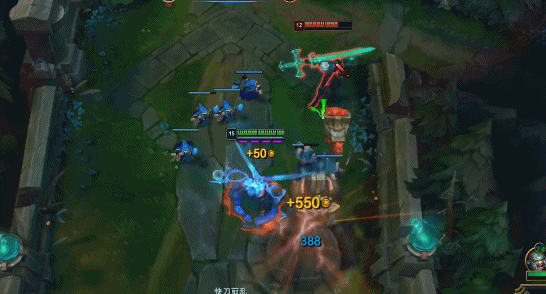 收下红BUFF时我们学习E技能,直接E到石头人并且惩戒大石头人,只A大石头人,用Q的AOE伤害去打中型石头人。