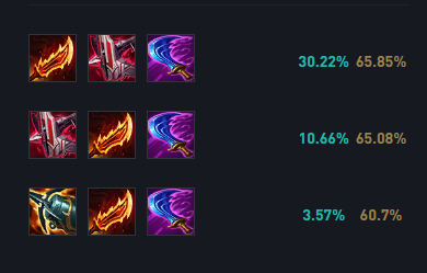剑圣是一个特别需要攻速的英雄,符文首选致命节奏可以增加剑圣的攻速与攻击距离。凯旋增加剑圣Gank或者参与击杀过后的一个回复,欢欣增加剑圣攻速,坚毅不倒则可以让剑圣在残血时候打出更多伤害进行收割。