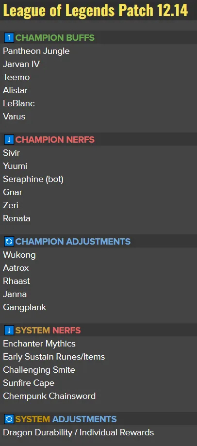 机制削弱:护阵师神话装备,符文/装备的前期续航,挑战惩戒,日炎圣盾,炼金朋克链锯剑;