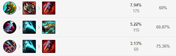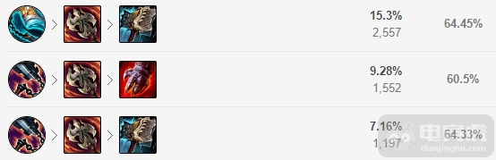 剑姬比较稳定的神话装备还是选择渴血战斧,增加伤害,生命值,技能急速和生命恢复效果,主动释放造成伤害的同时还会恢复部分生命值,有利于团战的发挥。贪欲九头蛇增加推线速度,让其单带能力更强,血手触发后提供大量护盾,团战可抗伤害的同时来进行输出。当然,新装备单带刀也是非常适合剑姬的装备,能够让她在单带时有更强的作战能力。新版挺进破坏者对于剑姬来说也很实用,毕竟剑姬不依赖挺进的位移,高额的减速可以帮助她进行粘人。