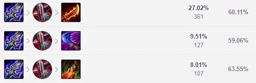 破败是刀妹的核心,提升攻速的同时还能增加打坦能力,减速也能很好地留人。盾弓是当前刀妹选择出的神话装备,增加自身坦度,提升进场容错率。后续的装备以攻击特效为主,羊刀、智慧末刃都是不错之选。