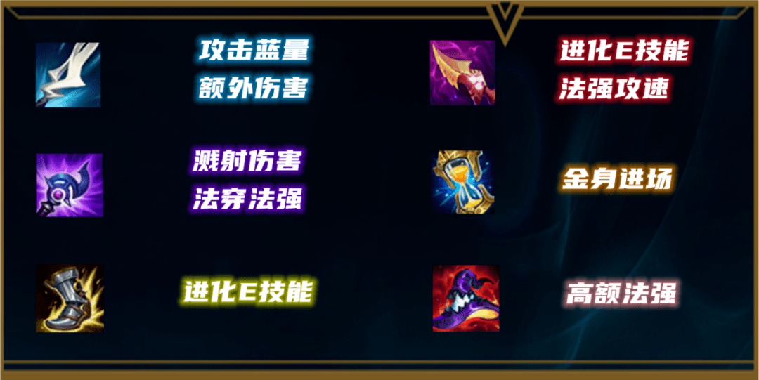 首先AP的POKE流卡莎是一个成型前战斗力比较弱的玩法,所以需要调整出装顺序达到可以保证前期战斗力,首先第一件装备先出魔宗,然后还需要出一个1100的锯齿短匕来达到进化Q技能的效果,这样就可以保证卡莎前期打架的爆发能力,然后就可以做卢登的回声,这是POKE卡莎必出装备,提供法强和溅射伤害,同时蓝量可以作用到魔宗的伤害上。此时卡莎Q技能和W技能已经进化,同时具备了POKE能力和爆发,然后第三件做出攻速鞋,搭配纳什之牙来进化E技能以及增加法强和攻速,让卡莎具备POKE伤害的同时也有一定的持续作战能力。最后补一件金身来增加生存能力,同时也可以W技能命中残血后进场收割金身留人。最后补出大帽来增加POKE伤害。