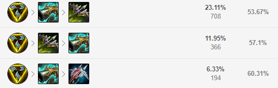 三相之力是船长的核心,搭配上Q技能能够打出更高的输出。收集者提供的穿甲和斩杀,非常适合船长,让他更加灵活,伤害更足。后续的装备以穿甲为准,提升输出能力。
