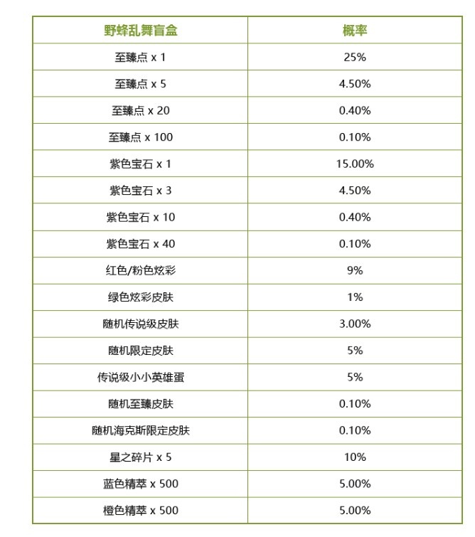 盲盒的奖池与概率见下方表格
