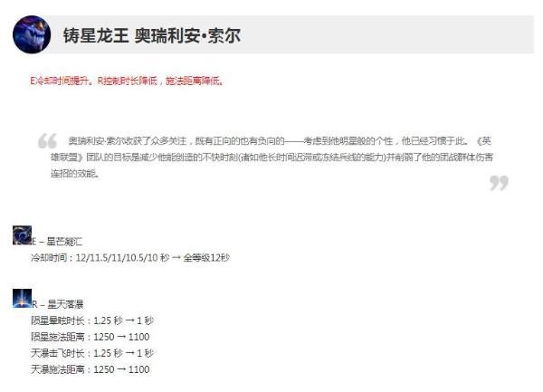 E冷却时间提升。R控制时长降低,施法距离降低。