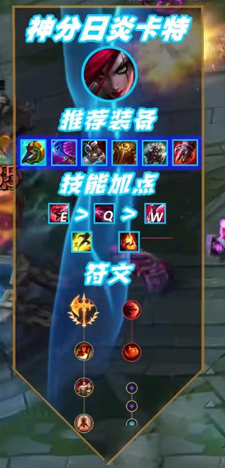 这个打法主要是一个半肉特效思路,因为纯AP卡特太脆而且输出不稳定,半肉打法提高容错率的同时还有着不错的混伤输出。