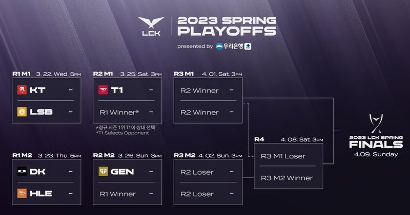KT作为常规赛第三,相对于常规赛第四的DK拥有优先选择对手的权利,而KT选择了常规赛第六的LSB作为首轮对手,将于3月22日开战。