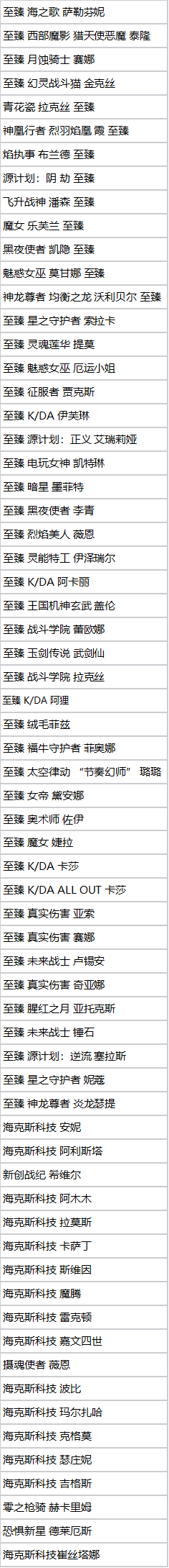 (本奖池内至臻皮肤均不附赠图标,与神话精萃商店兑换保持一致,敬请召唤师注意)