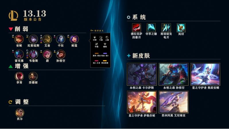 就在最近英雄联盟官方放出了对于13.13版本的更新内容,这次更新有许多英雄进行了调整,有不少英雄进行了增强,也有不少英雄被削弱了,那么下面就给大家带来LOL13.13英雄改动一览。