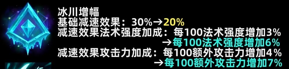 减速效果法术强度加成:每100法术强度增加3%→每100法术强度增加6%