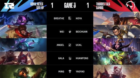 RNG围绕上路河道发起伏击,与TT大部队遭遇以后果断开团,凭借火龙魂的爆炸伤害秒掉了猴子与泰坦,随后轻松拿下大龙Buff,回城稍作休整以后RNG从下路推进高地,虽然TT集火秒掉了进场的蔚,但泽丽与阿狸成功接管团战,RNG击溃TT以后推平基地,拿下BO5的胜利。恭喜RNG 3-1战胜TT晋级淘汰赛下一轮!