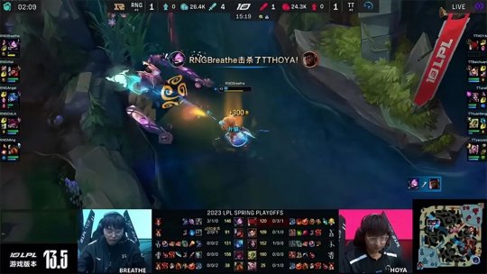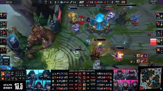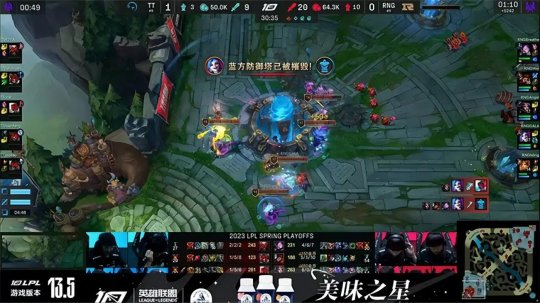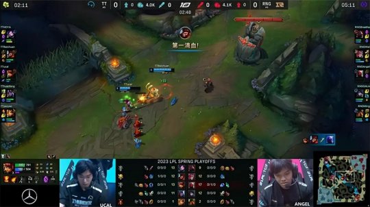 2023 LPL春季赛季后赛10进8第一场比赛由RNG战队对阵TT战队,TT战队自改名以来队史首次杀入LPL季后赛舞台,面对上LPL联赛五冠王RNG战队,胜者将会继续季后赛的征程,败者将直接淘汰出局,并且无法获得宝贵的S赛积分。TT开局一鸣惊人以巨大优势击败RNG先得一分,但RNG展现出强队的深厚底蕴,通过灵活的调整让一追三,以3-1的比分击败TT成功晋级。