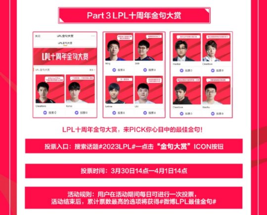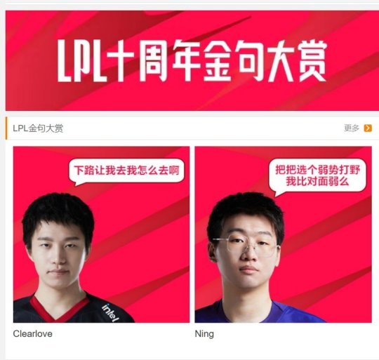 微博电竞公布了LPL十周年金句的投票,其中Ning、UZI、Clearlove的经典名句纷纷上榜。那么,对大伙儿来说你印象最深的LPL金句是哪一句呢?