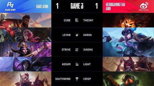 RA完全围绕老鼠展开攻势,28分钟左右RA又一次先手到纳尔与猪妹将二人斩杀,WBG想要反打但险些被老鼠的爆炸AOE伤害直接融化,RA顺势收下炼金龙与大龙Buff,虽然经济仍然落后但无疑将团战主动权握在了自己手里。WBG被老鼠压制的苦不堪言,只能紧紧抱团避免再次被老鼠抓单。RA众人在三狼附近寻找新的机会,没有等到老鼠就贸然尝试集火纳尔,WBG抓住机会果断开团秒掉了洛,老鼠来迟一步开大输出成为了WBG集火的下一个目标,RA苦心经营一整局的体系在此刻土崩瓦解,妖姬斩获四杀带领队伍团灭RA,WBG众人从中路长驱直入强拆基地结束了比赛,将双方比分扳平!