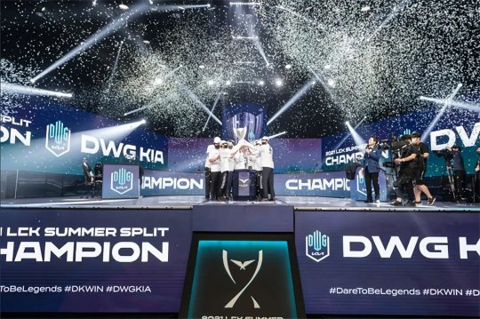 2021年DWG战队获得韩国起亚汽车集团投资,更名为DWG KIA(DK),上单选手从Nuguri更换为Khan,延续了对于LCK的统治,成为继T1之后LCK第二支获得春夏双冠以及联赛三连冠的队伍,尤其是在夏季总决赛中3:1正面击败Faker率领的T1,一时间风头无两。可惜的是在MSI以及全球总决赛里,DK战队虽然代表LCK两度杀入决赛,却均以2:3的比分败给了LPL的RNG、EDG战队,成为史上首个MSI+S赛两连亚的队伍。