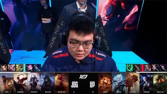 2023 LPL春季赛常规赛第十周第六日,JDG战队与UP战队迎来他们的常规赛收官战,相比于早早无缘季后赛的UP战队,JDG战队本场比赛的战果决定了他们能否夺得常规赛头名乃至季后赛复活甲,面对原本硬实力就弱于自己很多的对手,JDG没有丝毫想要手下留情的理由,通过凌厉的前期攻势迅速扩大差距,两局摧枯拉朽的碾压2-0击败了UP,锁定常规赛第一。