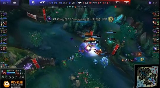 开局小法师无悬念压制了卡萨丁,不过KT下路依旧没有线权,导致双方中野对拼时洛能够支援到场,盲僧抢先拿到小法师的一血,猴子收下卡萨丁之后被T1野辅带走。KT下路得知洛已经交了闪现,蹲在小龙河道抓死了回线的洛。