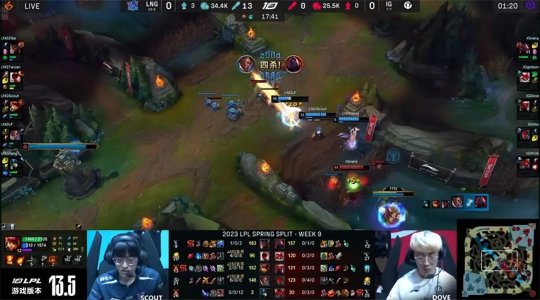 北京时间3月19日,LPL春季赛第九周的收官战由iG做客苏州挑战LNG!Scout在第一局选出安妮,1级直接越兵线压制瑞兹,把Dove的瑞兹压回塔下,iG中路的劣势带崩了队友,LNG全程碾压先下一城,最终有惊无险2-1击败iG!