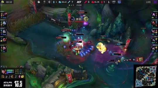 酒桶不甘示弱gank下路还以颜色:隔墙卡视野E闪突然现身,撞晕了毫无防备的洛,厄斐琉斯再跟大招将其带走。前期iG选择“军训”上路,佛耶戈再次抓上得手,W灵性预判到凯南闪现的位置完成击杀。LNG则主打下半张地图,iG付出洛的代价才抢到海克斯小龙。15分钟iG下路组赶往上路河道跟上中野会合,LNG下路组趁机推掉一血塔,不过酒桶掩护杰斯推线时遭到iG全员包夹双双阵亡,iG无压力拿到峡谷先锋,撞掉LNG中路一塔。