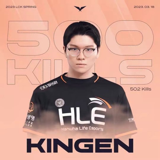 LCK官推发文祝贺Kingen达成LCK生涯500杀成就: