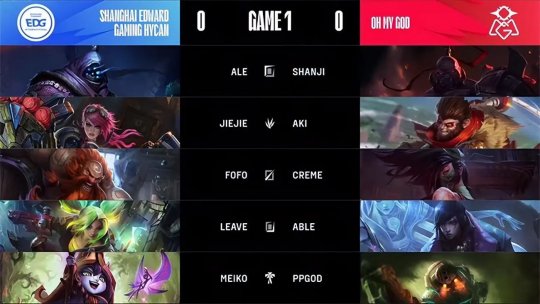 两队休整几分钟以后再次在中路爆发大规模团战,蔚和酒桶的定点斩杀再度秒掉厄斐琉斯,随后武器追死赛恩,EDG成功拿下听牌龙,局面开始向着不利于OMG的方向发展,OMG不愿等到龙魂团战慢性死亡,选择了非常冒险地Rush大龙,EDG众人迅速赶到龙坑,厄斐琉斯又一次0输出被秒,EDG团战美如画瞬间打出0换4接盘拿下大龙Buff。回城补给状态以后EDG带领兵线同时从中下两路推进,OMG以攻为守上前殊死一搏想要强秒泽丽,泽丽在队友的保护下成功存活并且打出了爆炸输出,EDG长驱直入团灭OMG以后直接一波推平基地拿下了第一局比赛的胜利,1-0领先对手。
