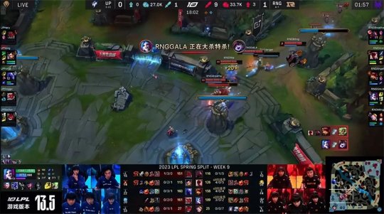 北京时间3月16日,LPL春季赛第九周第四天晚上的重头戏由RNG对阵UP!两队的团战发挥各有千秋,不过UP的联动及运营能力落于下风,最终RNG稳扎稳打2-0送给UP六连败!
