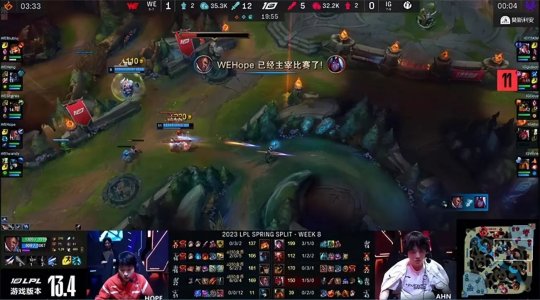 北京时间3月11日,LPL春季赛第八周“超级周六”的第一场比赛为“远古德比”——iG对阵WE!第一局WE从下路打开了突破口,二打三线杀了卢锡安,iG的阵容在中期团战相当被动,最终WE稳扎稳打2-0战胜iG!