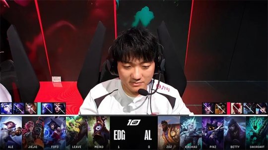 AL抱团拿到小龙阻断EDG的龙魂节奏,EDG见状再次开始Rush大龙,AL包夹过来以后首先想要击杀落单的凯南,结果凯南开出金身撑到队友赶到反杀了酒桶,杰斯随后也被辛德拉EQ推晕击杀,EDG顺势收下大龙Buff,再度拉开差距。休整过后EDG众人带领兵线同时推进中下两路高地,AL已是强弩之末背靠门牙塔做最后的防守,安妮尝试闪现先手凯南但是璐璐立刻给出坩埚解控,凯南直接闪现进场天雷瞬秒厄斐琉斯,AL兵败如山倒被EDG一波推平基地。恭喜EDG先下一城取得1-0领先。