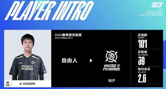 NIP在近日宣布自由人打野选手shad0w加入队伍,今日对阵BLG比赛,shad0w将和Dream一起担任NIP中野首发。