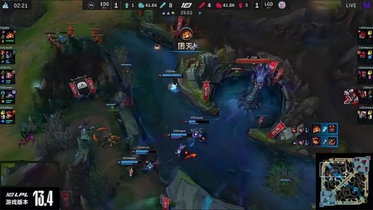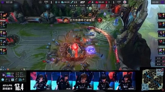 手握三龙Buff的EDG彻底掌握话语权,通过四分一分推同时推进中下两路高地以后发起总攻想要一波结束比赛,阿卡丽TP绕后但是已经被视野发现,EDG不等阿卡丽到位直接大树开团,通过伤害压制将LGD按进了泉水之内,最终击溃LGD拿下第一局比赛的胜利,1-0先声夺人!