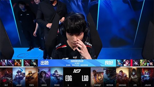 2023 LPL春季赛常规赛第八周第四日,LGD战队迎战目前位居LPL榜首的EDG战队,虽然在第二局比赛里凭借上单Xiaoxu的出色发挥LGD一度扳平比分,但是在决胜局里EDG还是用冷静的运营决策一击制胜拿下了比赛胜利,2-1战胜LGD的同时成为本赛季首支锁定季后赛资格的队伍。