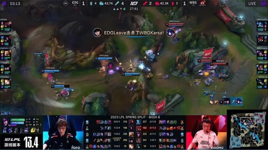 北京时间3月7日,LPL春季赛第八周第二天的首场比赛即是万众瞩目的强强对话——两连胜的WBG对阵榜首三连胜的EDG!第一局Ale的鳄鱼在对线期两度单杀了THESHY的奎桑提,中期WBG抢到了大龙,但EDG三C的团战发挥更胜一筹,最终有惊无险2-1击败WBG晋级季后赛!