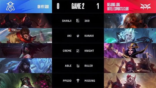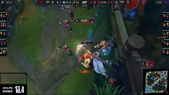 OMG大兵压境连破两路高地,直接强势向着基地发起总攻,JDG且战且退极力反击却无法处理掉OMG的前排,最终被OMG一波平推直接强拆了基地,OMG扳平比分,把比赛拖入决胜局。