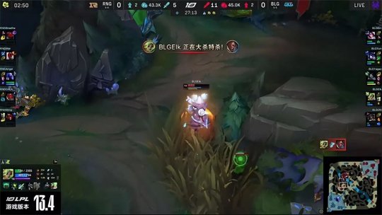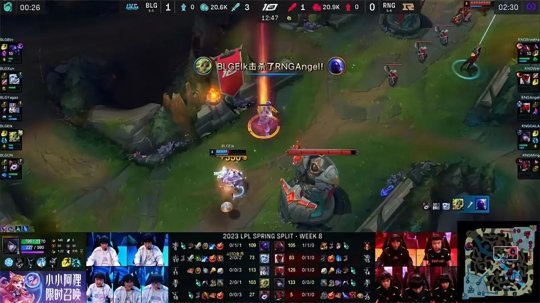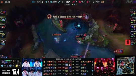 2023 LPL春季赛常规赛第八周首日,RNG战队对阵BLG战队,两队贡献了非常精彩的团战发挥,决胜局里BLG更是出其不意掏出机器人辅助,通过中期连续不断的神钩开团打崩了RNG的节奏,最终BLG完美团战2-1击败RNG带走比赛胜利。