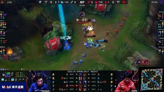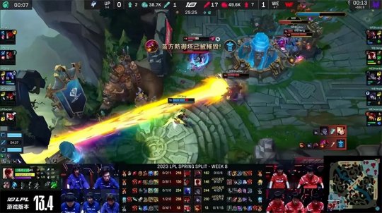 2023 LPL春季赛常规赛第八周第三日,UP战队做客西安挑战WE战队,虽然两队目前战绩比较接近,但是在比赛过程中UP的状态与表现都逊于WE,连续两局比赛在前期就陷入劣势,中期很难有所作为,最终被WE稳扎稳打2-0击败。