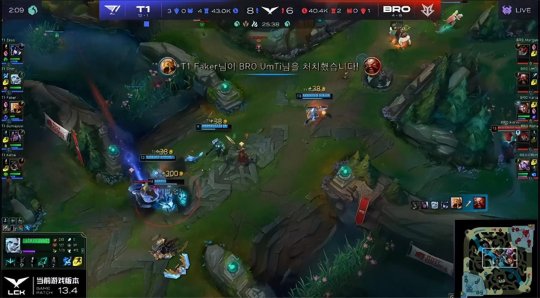 佛耶戈控下风龙顺手抓中,沙皇先手回旋推打出杰斯的闪现,佛耶戈再跟W闪帮沙皇拿到人头。这一场BRO不再畏首畏尾,在峡谷先锋河道先行集火带走了沙皇,索拉卡吃到韦鲁斯的大招无奈倒地,T1打出1换1拿到先锋还能接受。酒桶继续“军训”上路,再次抓死了猪妹,作为交换T1控下土龙,并且放出先锋撞掉BRO中一塔的镀层。15分钟T1双人组推掉下路一血塔,同时Faker的沙皇在上路一抗二,反杀了鳄鱼之后险些追死酒桶。杰斯还想去上路收掉残血的沙皇,不料T1趁机通关了自家下路。