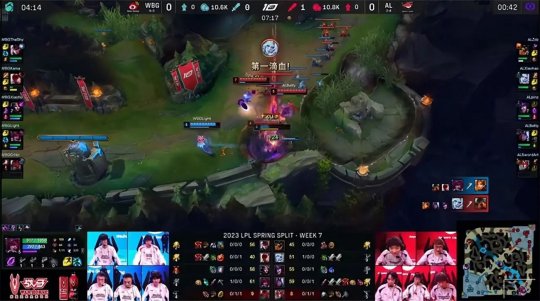 AL打峡谷先锋时被发现,WBG利用上路的线权优势劝退了AL,顺利地接盘先锋。Zdz的鳄鱼虽然补刀落后于奎因,但防gank意识拉满,成功地化解了WBG上中野的越塔gank攻势,同时AL在下半张地图捷报频传:先是中野双游下路击杀了泰坦,随后AL又埋伏在WBG红buff野区,抓死了落单的霞,回身控下水龙还能接受。WBG放出先锋让奎因单吃了AL上路一血塔,盲僧接盘了佛耶戈的第二只先锋。16分钟换线到下路的妖姬被AL越塔强杀,韦鲁斯得以单吃了一塔,双方都在按照自己的节奏进行。