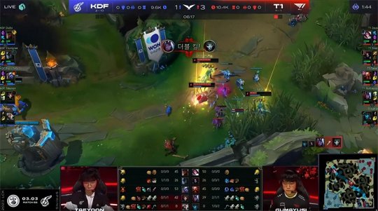 KDF中下外塔全部沦陷,随之而来的是彻底失去了野区资源,所有人只能在远离T1的一侧努力发育,然而T1并没有拖延时间的打算,拿下听牌龙以后有条不紊地运营等到20分钟大龙刷新直接开打,KDF鼓起勇气靠近龙坑寻找机会,结果T1已经拿下大龙并且回身向KDF发动攻势,KDF队员四散奔逃仍然没能逃过T1的追击惨遭团灭,T1毫不留情一波推平基地,仅耗时21分钟就拿下比赛胜利,1-0领先。