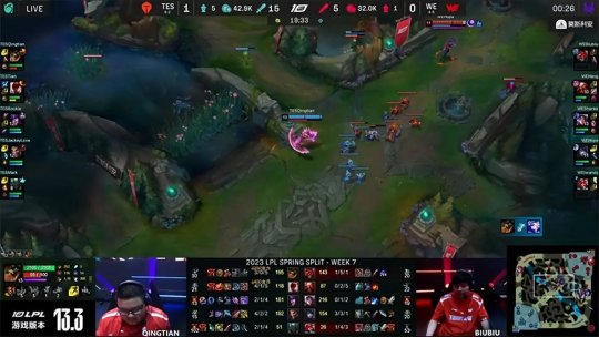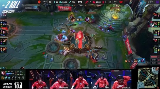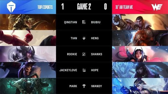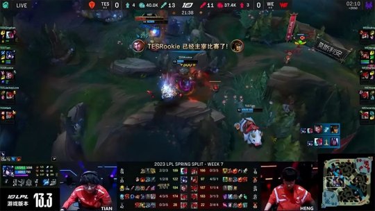 2023 LPL春季赛常规赛第七周第二日,TES战队做客西安对阵WE战队,WE凭借积极的前期进攻一度取得了领先,但TES的个人实力以及团战配合更胜一筹,连续两局精彩纷呈的对攻大战,TES都以压倒性优势击溃WE赢下比赛,最终2-0从客场带走胜利。