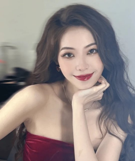 主持希然晒照 新的红丝绒蛋糕与黑巧口红