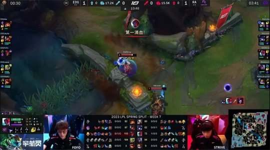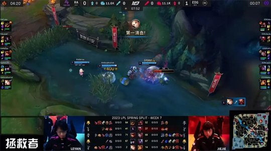 北京时间2月27日,LPL春季赛第七周的揭幕战由RA对阵EDG!第一局Jiejie的蜘蛛从下路打开了突破口:盲僧交闪现拿到一血后饱受针对,下半野区被反烂,RA中野节奏哑火,即使Cube的赛恩单杀了Ale的铁男也无力回天,最终EDG有惊无险2-1击败RA!