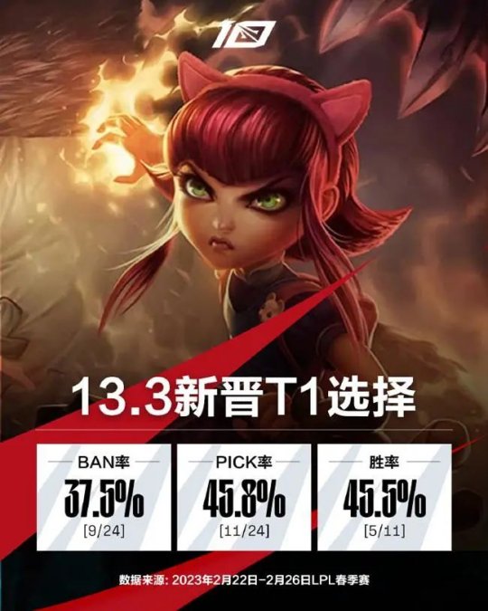 13.3版本新晋“赛场宠儿”——黑暗之女 安妮,在24场比赛中被BAN多达11次,出场9场,获胜4场。