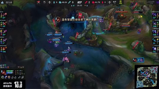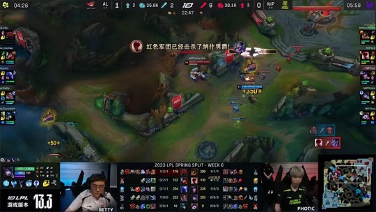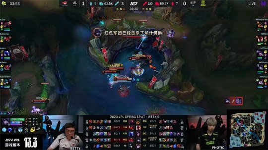 2023 LPL春季赛常规赛第六周第五日,AL战队对阵NIP,第一局AL发挥出色稳健运营取得领先,而第二局NIP调整战术,在前中期打的更为主动,成功让一追二,以2-1的比分击败AL拿下比赛胜利。